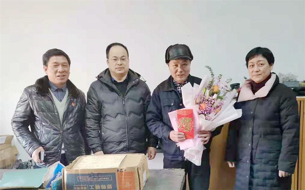 2021年1月12日,浙江省國防工業工會徐航主任、王哲(副處級調研員)代表省國防工業工會來公司慰問全國勞動模範餘昌琴和困難職工。公司黨委書記、工會主席姚錦南陪同。