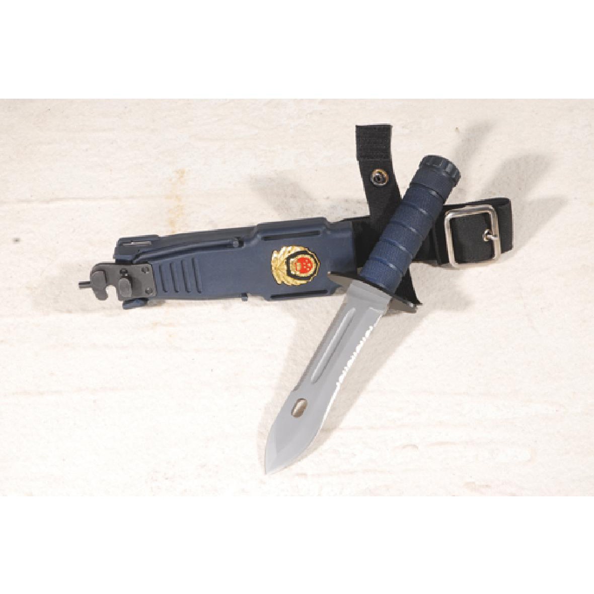 警用製式刀具是裝備公安單警的專用刀具。該刀具由刀身和刀鞘兩部分組成,具有切割、劈砍、穿刺、鋸割、剪切、碎玻璃和螺絲刀等功能。並配有磨刀石、止血帶、彈弓皮兜、魚鉤、釣魚線、線墜、手術刀、創可貼、縫紉針線、別針等附件。