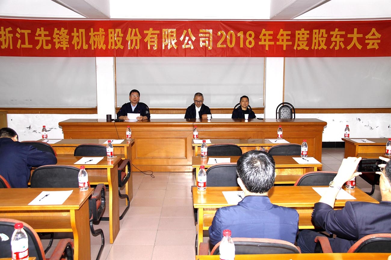 On the morning of May 15, 2019, the company's 2018 Annual General Meeting of Shareholders was held in the conference room on the sixth floor of the company's office building. Company directors Chen Bo, Yao Jinnan, Wang Qing, employee supervisor Zhang Zhiyuan, and company shareholders attended the meeting. Company director Yao Jinnan presided over the meeting as entrusted by the board of directors. The meeting reviewed and approved 15 proposals including the "Proposal on the Work Report of the Board of Directors of Zhejiang Pioneer Machinery Co., Ltd. in 2018" and the "Proposal on the Work Report of the Board of Supervisors of Zhejiang Pioneer Machinery Co., Ltd. in 2018".